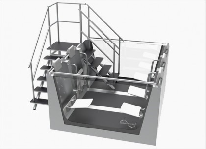 Басейни мають підлогове покриття і не вимагають підготовки земельних робіт. Зі скляними сторонами терапевт відчуває себе близько до пацієнтів і може стежити за їх прогресом.